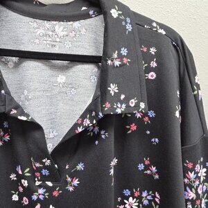 Cuddl Duds Shirt Womens 3X Black Ditsy Floral Collared Tunic Long Sleeve Stretch