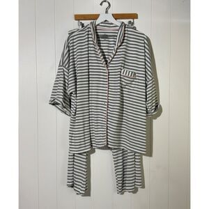 Pajama Set · Plus Size 2X · Gray Striped Sleepwear · Cotton Blend · Cozy Nightwear · Button Front Top · Wide Leg Pants · Lounge Set · Comfy Pajamas · Elastic Waist · Piping Detail · Relaxed Fit · Soft Fabric · Everyday Comfort