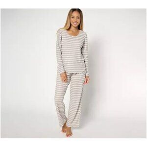 Cuddl Duds Soft Rib Knit Pajama Set Grey Stripe Size 1X A663020