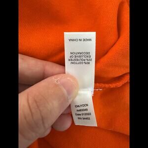 This item is a Cuddl Duds Sun Terry Hooded Tunic in the color Spicy Orange. It is a size Medium. This item has never been worn. It does not have attached tags but does have the original packaging that it came with. I opened the packaging in order to take photos and measurements for this listing.
