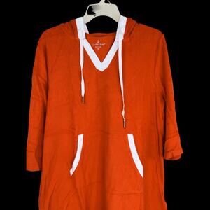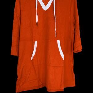 Cuddl Duds Sun Terry Hooded Tunic Spicy Orange Medium 3/4 Sleeve NWOT Pocket