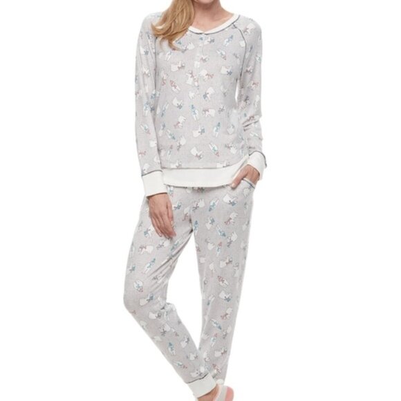 Cuddl Duds White Gray Polar Bear Cozy Warm Winter Pajama PJ Set