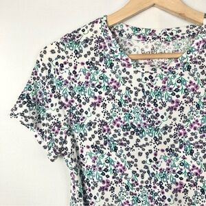 Cuddl Duds White Purple Ditsy Floral Short Sleeve T-Shirt S