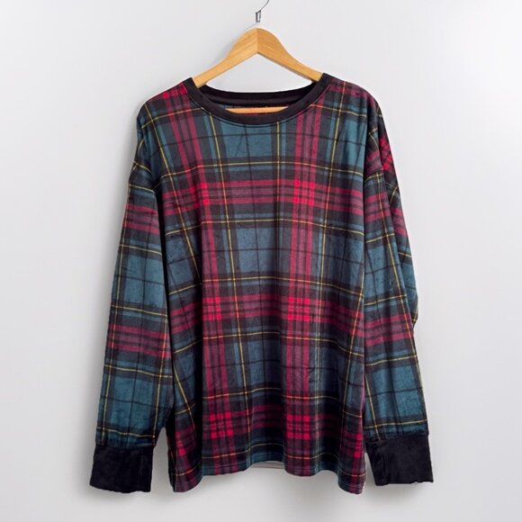 Cuddl Duds Women’s 2X Plaid Red Blue Plaid Plush Pj Top Loungewear Cozy Winter