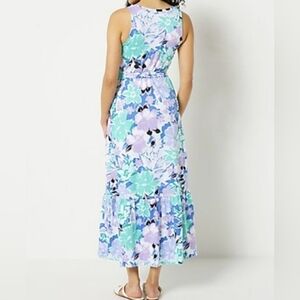Cuddl Duds Women’s Blue Floral Scoopneck Tiered Maxi Dress