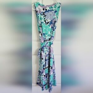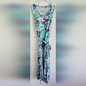 Cuddl Duds Women’s Blue Floral Scoopneck Tiered Maxi Dress Size Medium Petite