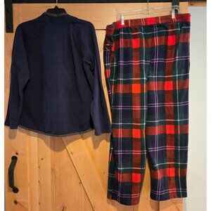 Cuddl Duds Women's L Blue Red Fleece Henley Pajama 2 Piece Set Drawstring