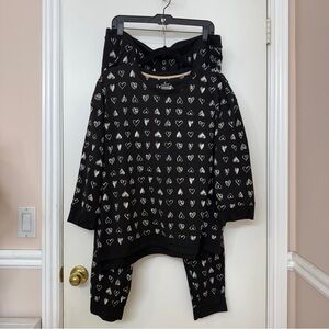 Cuddl Duds Women's Pajama Lounge 2-Pc Set Soft Cozy Black Heart Pattern Size XL