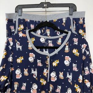 Cuddl Duds Women's Pajama Lounge 2-Pc Set Soft Cozy Blue, dogs Print Size XL