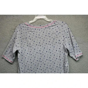 This is a Set of Cuddl Duds Pajamas for Women that are a size Small. They are gray with blue hearts on them. They are 73% Cotton, 23% Polyester, and 4% Spandex. Laying flat, the top measures: Armpit to armpit-19" and the length is 25.5". The bottoms are cropped and they have a 27" Waist. The inseam measures 21". They have a drawstring. In good condition.