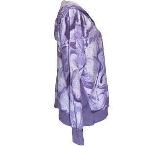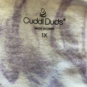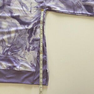 Cuddl Duds women's 1X purple marble hoodie with rib trim. Top truly defines comfort hoodie with a cozy V-neckline and long sleeve (with thumbholes). Wear it over a swimsuit on a windy day, at the beach, out to breakfast with the girls for a dress down brunch, or out running errands for the day. It’s a very versatile top.