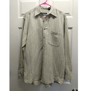 Jos. A. Bank Sportswear Men's Size Medium Beige Check Print Long Sleeve Button Up Linen Cotton Blend Shirt