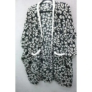 This is a Cuddl Duds Women's Sleepwear Poncho or Robe that is a size Small-Medium. It is ultra Soft and Comfy. It is black and white and has pockets. It has snaps under the arms so you can wear it different ways. It is 94% Polyester and 6% Spandex. It is 37" in Length. In great condition.