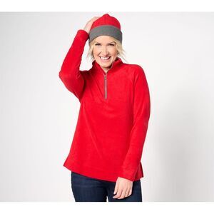 Make your way through the day in total comfort when you're wearing this mock-neck pullover and matching beanie. Both are made of soft fleece for ultimate coziness and warmth. From Cuddl Duds.Condition: