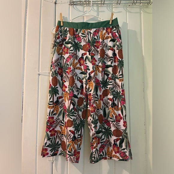 NWOT and no defects. Super soft and stretchy size small Cuddl Duds pajama cropped pajama pants. Cute tropical print with birds, pineapples and bananas. Flat waist 14” and inseam 20 1/2”. Tote 15.