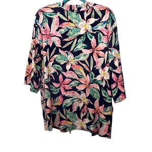 Cuddl Duds tropical flower open cardi with pockets and locker loop M.