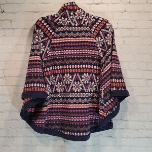 In very good used condition no flaws. Navy blue legging style fleece pants with a poncho top. Pants have an elastic waist. Top has a kangaroo pocket.