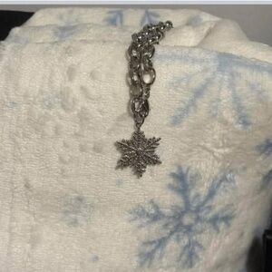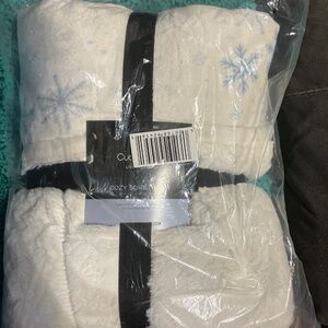 Front Has Blue Snowflakes & Reverse Side Faux Fur & Throw Blanket is white