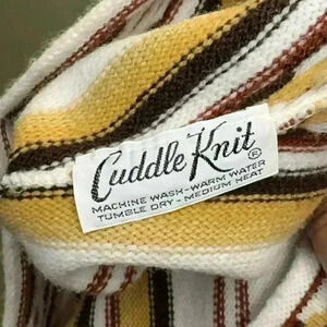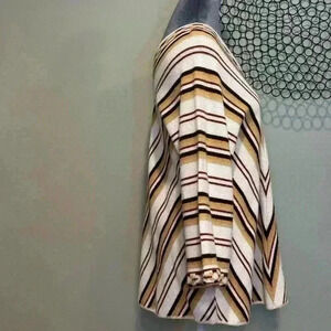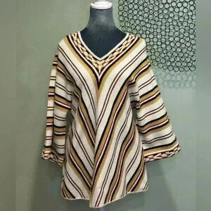 Cuddle Knit Vintage Cream Striped Brown, Black V-Neck Sweater- Size Medium