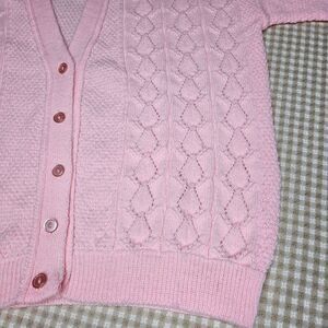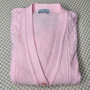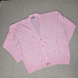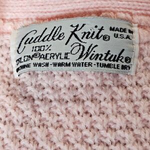 Cuddle Knit Wintuk Pink V Neck Button Up Open Knit Cardigan Sweater Vintage 60s