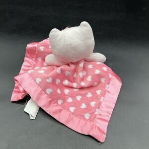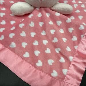 Cuddle Time Pink Owl Lovey Security Blanket Heart Print Satin Like Bottom