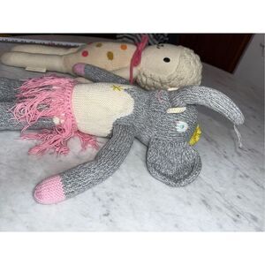 Nice preowned condition recently washed and ready for their new home Lucy Lamb from cuddle and kind made in Peru. Will include for free. The knitted elephant retail was over $70 for it.