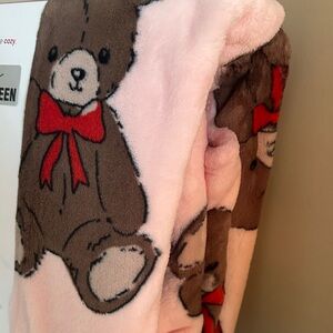 Experience ultimate coziness with the supremely soft blanket. Featuring an adorable brown bear design on a soft pink background, this blanket is perfect for adding warmth and charm to any room.