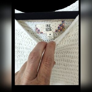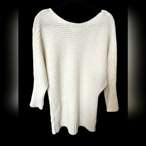 Cuddly NWOT Pink Rose M ivory, long sweater, featuring a classic crew neck; can be worn off the shoulder. 3/4 sleeve length. Measures 24" pit to pit, 32" long from shoulder to hem, 22" sleeve length. Very stretchy & soft. Looks great with leggings 💕