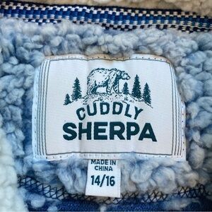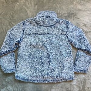 Cuddly Sherpa Bluish Color Fuzzy Warm Quarter Zip Pullover Sweater Size 14/16