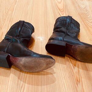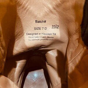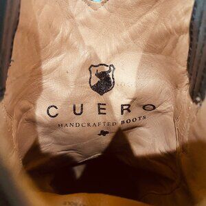 Cuero "The Austin" Leather Western Boots, Black Mens Size 7 D. Would fit womens size 9, they run a bit narrow in the toe, so could even fit a womens 8.5 probably. Handcrafted in Mexico, these boots are made of gorgeous, soft and supple leather that wears well, leather lined with leather insole also. Cuero is no longer in business, so these boots are no longer being manufactured and becoming rare. These are lightly worn in, perfectly comfortable with the softest inner sole of any Western boot I have ever worn. They beautiful, well-made and earned me compliments everywhere I wore them. The only reason I'm selling them is because I ended up sizing up to a wider size eventually.