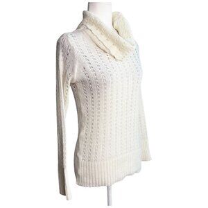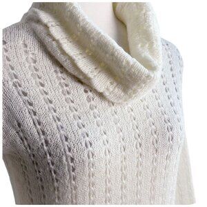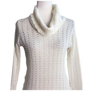Cuesta Blanca Open Knit Turtleneck Sweater Off White Cream Ivory Women's 40IT Sm