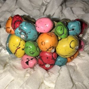 Multicolored stone cuff with Swarovski stones. Adjustable pinch cuff. Never worn.