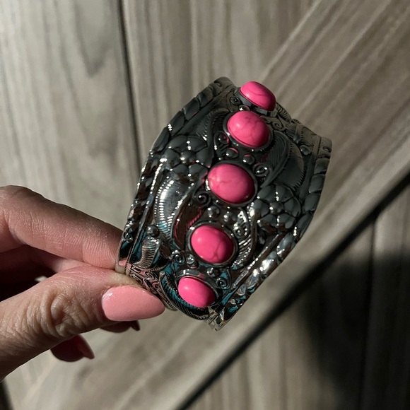 NEW, Beautiful Pink Crackle stone cuff bracelet