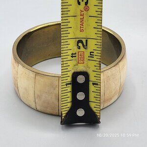 Cuff Bangle Bracelet Brass Bone Inlay Casual Boho Vintage 70s