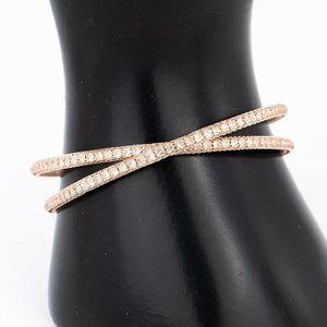 Cuff Bracelet Crossing Rose Gold Tone Mesh Over Rhinestone Memory Wire Flexible