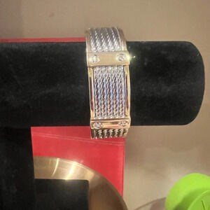 Cuff Bracelet Stainless Silver and Gold Easy Open NWOT Will send in dust bag