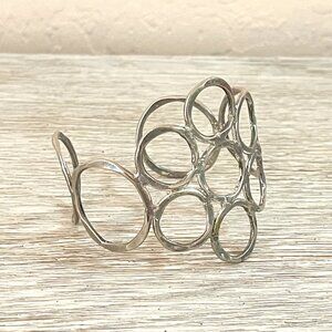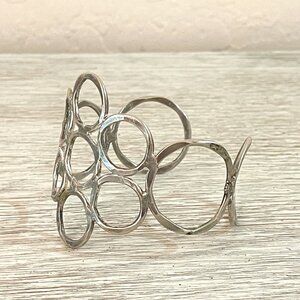 Cuff Bracelet Wide Silver Circles Adjustable Metal