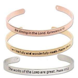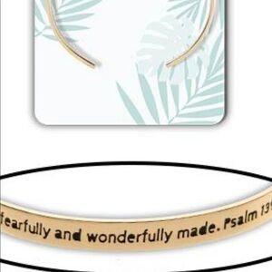 A wearable reminder that we are fearfully and wonderfully made! Cuff bracelet adjusts easily to fit most wrist sizes.