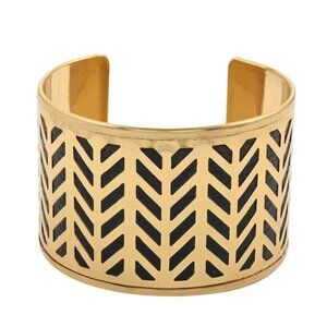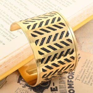Cuff Bracelet in Goldtone with Black Etching Style Design