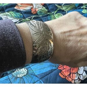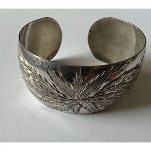 Cuff Etched Wide Silver Tone Adjustable Bracelet