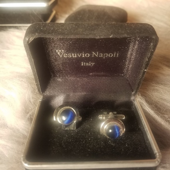 Brand new never worn Italian cuff links - blue cat's eye
