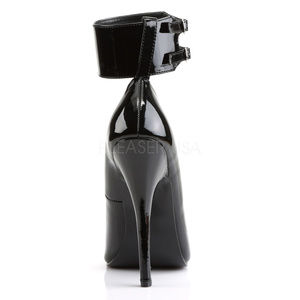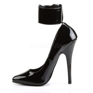 6" High Heel Pointed Toe Shoes. Interchangeable Removable Ankle Cuffs. Black Faux Patent Leather.