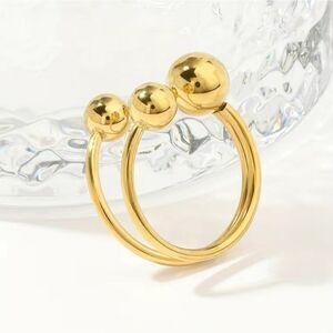 Cuff Ring Adjustable Inlaid Three Golden Beads Stainless Steel: