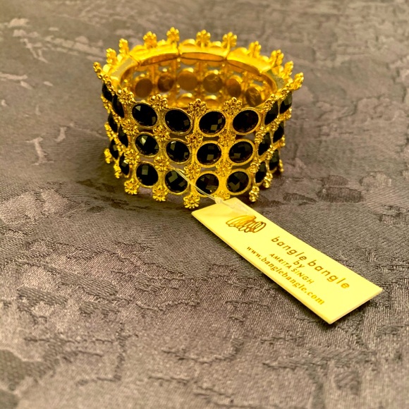 Beautiful classic cuff bracelet. Elasticized. Black and gold.