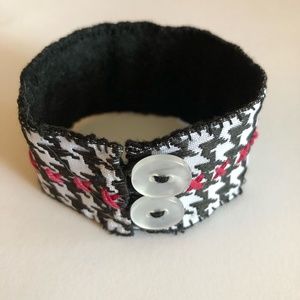 Cuff bracelet Houndstooth Embroidered hand-sewn Hand Crafted heart arrows hugs