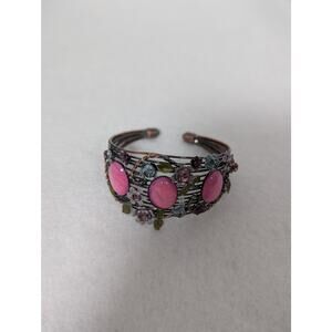 Cuff bracelet S/M pink cabochons Ename,l rhinestones see photos for measurements
