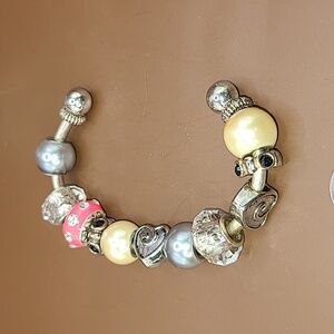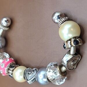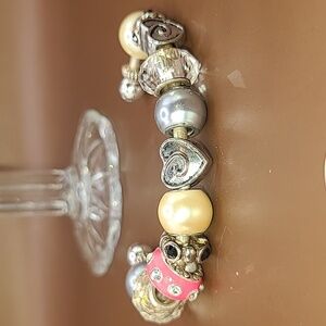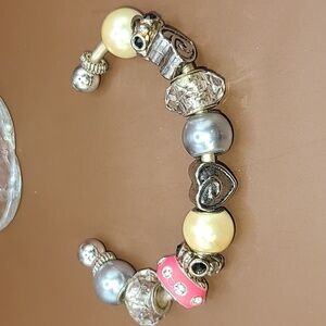 Cuff bracelet with charms. Pre-owned condition. No Maker's mark. I'm unfamiliar with charms. I have no idea who these are. Some wear. Note pictures. Cuff measures about 6 inches. Still room for a couple more charms.