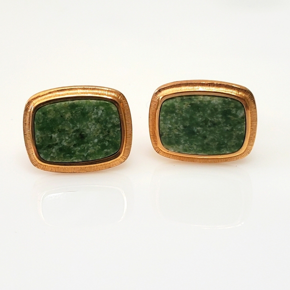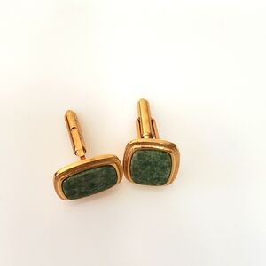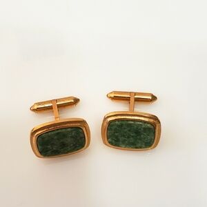 Beautiful cuff links in goldtone and green marbled cabachon. Great gift for him!