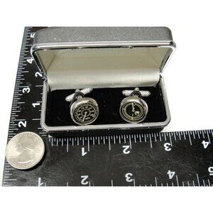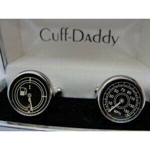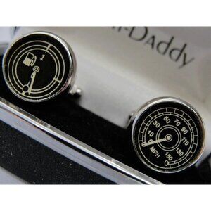 These Cuff-Daddy cufflinks are designed with a unique speedometer and fuel gauge design in a sleek, silver tone. They come in the original box, perfect for gifting or safe storage.