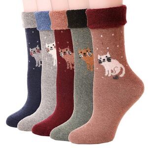 Perfect for the winter weather! 5-pairs of socks that are a blend of 55% Wool, 25% Cotton, 15% Polyester, 5% Spandex.